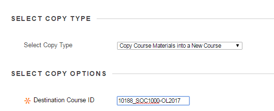 3. Enter the Course ID into the Destination Course ID box.