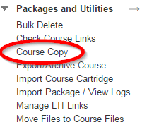 1. Under the Packages and Utilities heading, click Course Copy.