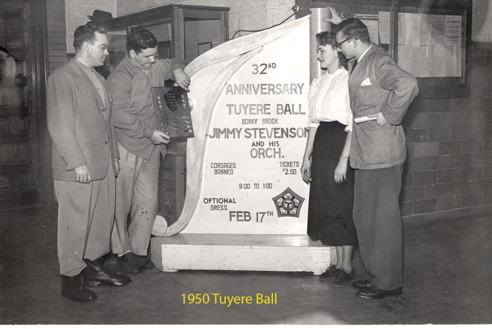 The Tuyere fraternity started in 1918, but under the name "Cosine Theta". At first it was just a club licensed to play cards and have a good time. By 1919 it was decided to become more like a "fraternity" and have a better view of the future.They decided on their motto: "United effort toward good fellowship and high scholastic standing." The name changed to "Tuyere" which in Latin means "to guide or direct." Actually a "tuyere" is a pipe that carries hot air into a furnace. But that term did not stop the members from using it, after all as one person wrote:" a "Tuyere" is a pipe that carries hot air into a furnace in order to aid in refining of the ore...wasn't the purpose of the fraternity to take the crude boy and by leading and guiding him aid in making a finished product."