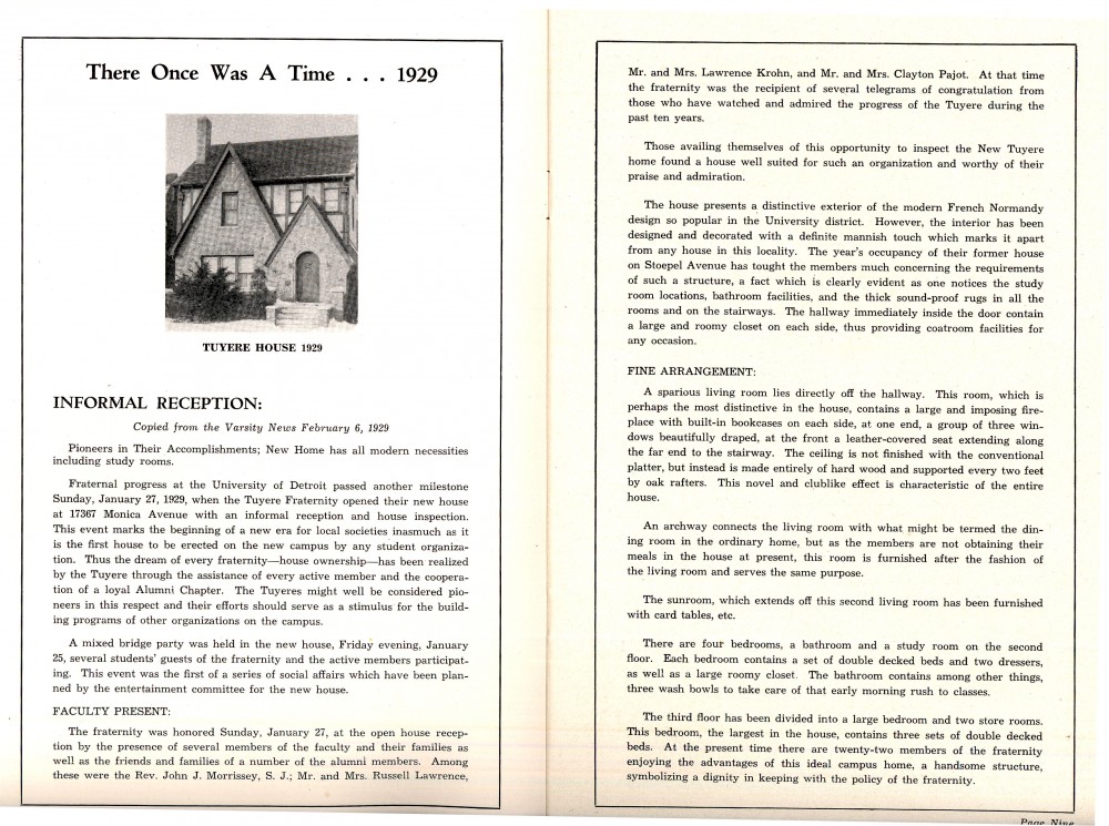 The Tuyere was an engineering fraternity and was one of the oldest continuously active fraternity on the U of D campus.It sponsored dinner dances and awards.