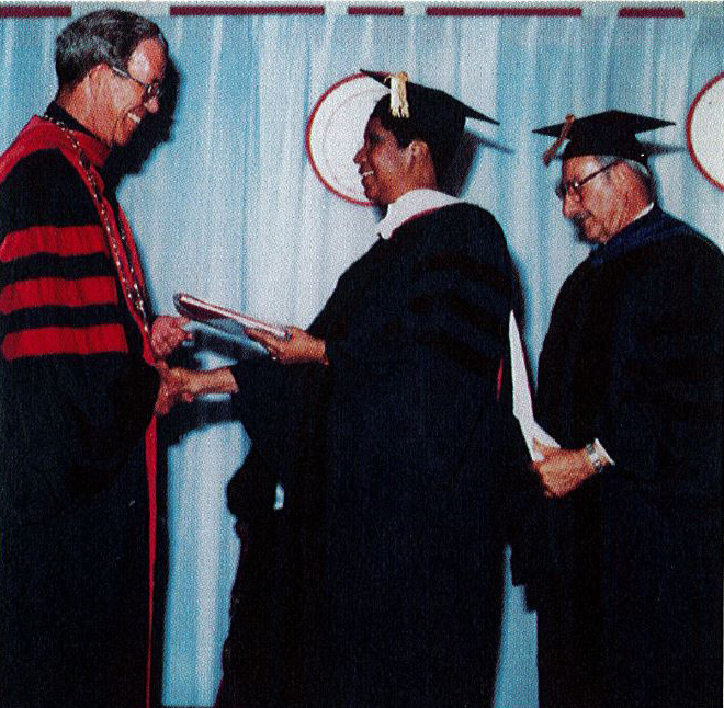 Respect -- not only is it the title of one of your most famous hit songs, it is also a quality you have earned in abundance. As the winner of 25 gold records, you have introduced to all Americans a unique blend of gospel, jazz and rhythm and blues -- a style of music which is integral to the heritage of Black America and the country at large. From your earliest years, you sang gospel hymns in your father's Baptist Church. During the sixties, you helped give pride to the rising tide of Black consciousness. Today, you sing in major concert halls throughout the world, recognized as America's Queen of Soul. Your music has enriched our lives, brought honor to our people and recognition to the City of Detroit. This Honorary Doctor of Music Degree celebrates your accomplishments and expresses our thanks for sharing your music with us.