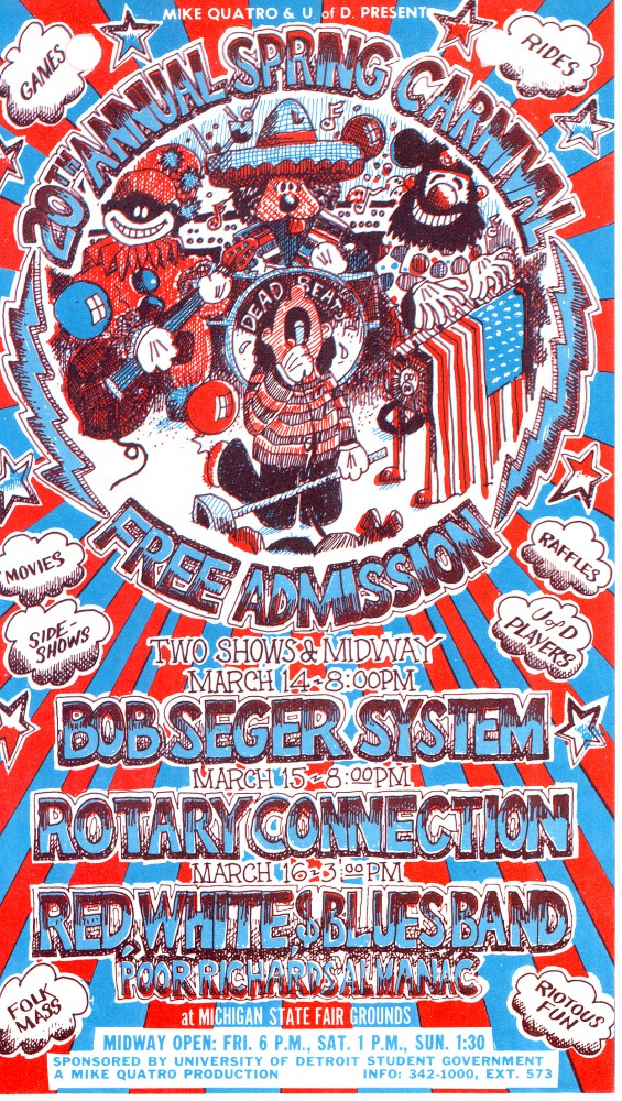 Recently, Bob Seger announced some of the dates for his final tour. In one of his early performances, he played here for the University's Spring Carnival in 1969 as the Bob Seger System. In that year, the sping carnival was held at the State Fair Grounds. Not sure at the time anyone would realize just how big a recording artist he would become or that he would be around almost fifty years later to make a grand final tour as one of the legends of rock 'n roll.