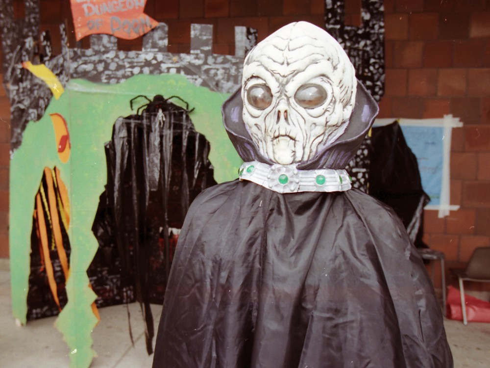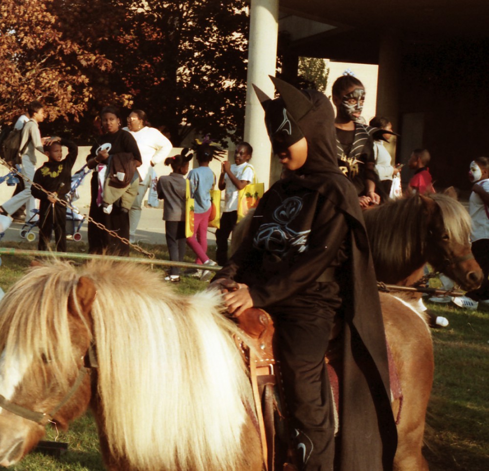 Safety Street is an annual event at the McNichols campus of the University of Detroit Mercy. It started from the School of Architecture in 1990 and has since grown to be a part of many campus organizations. Various neighborhood schools are invited to attend this free event where thousands of pieces of candy get handed out. In the 1999 event they even had pony rides for the kids. Have a Safe and Happy Halloween!