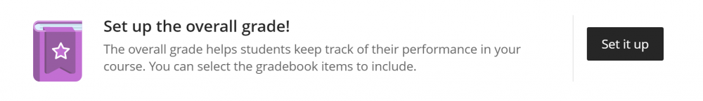 The first time you open the Gradebook for a course, you will see a message asking you to set up the Overall Grade. Click the SET IT UP button to open the Overall Grade page.
