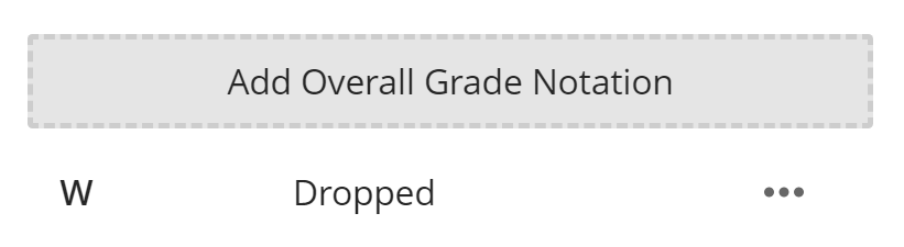 This section allows you to add custom text that can be used in the Overall Grade instead of the Schema value. Click ADD OVERALL GRADE NOTATION to create a new notation, such as W for withdrew/dropped, or I for incomplete. This is also a good way to display Pass/Fail grades for courses where that is an option. Note that these can only be used in the Overall Grade box, and not for grading individual items.