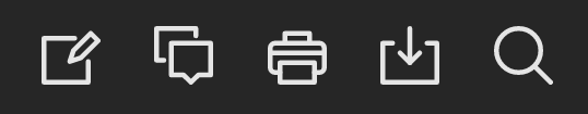 The Submission page contains a document window with a toolbar at the top. The icons on the right side allow you to annotate, add comments to, print, download, and search the document.