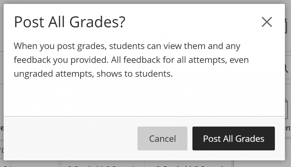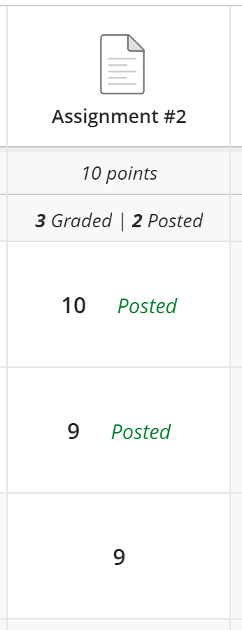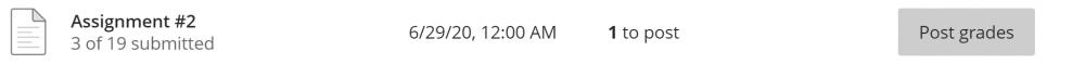 IMPORTANT: Blackboard Ultra withholds grades from students until they are “Posted.” This eliminates the need to hide a Grade Center column while entering student grades, and makes it easy to release grades for an item to the entire class at the same time.