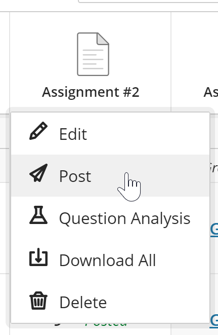 To post an individual student’s grade, click a cell and choose POST from the menu.
