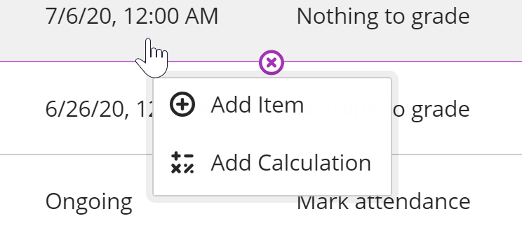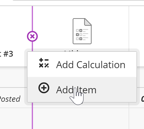 Items are the Ultra Gradebook equivalent to the “Create Column” feature in the Blackboard Classic Grade Center. An Item is unattached to a Blackboard activity and can be used to store points unrelated to online work.