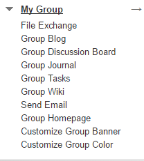 Group Blog, Discussion Board, Journal, Tasks, and Wikis – Copies of the main course tools, but private to your group and the instructor.
