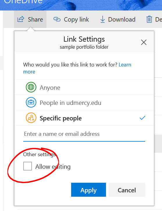 To prevent people who can access your folder from editing its contents, uncheck the "Allow editing" box.