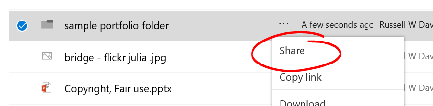 Setting up a portfolio folder in OneDrive is an easy process. First you'll create the folder, then add your files to the folder, then share the folder with the portfolio evaluating body's membership.