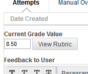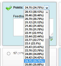 If you’re using a score-range style rubric, when you select a level of achievement a pulldown will appear giving you the option to select the appropriate score (or percentage) for that item. The default selection is the middle of the range …