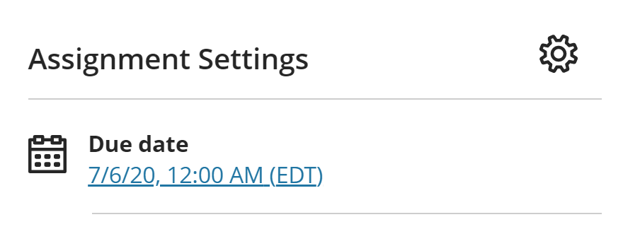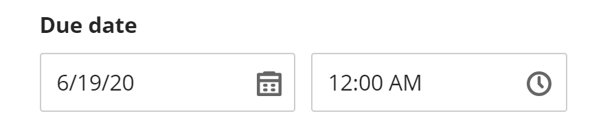 To set the due date and time, click the values and select a new date or time from the popup. The Due Date is required for assessments in Blackboard Ultra.