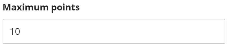 If you have not added any questions to the assessment (i.e. Assignment mode), you can edit the MAXIMUM POINTS for the Assessment. If you add questions (i.e. Test mode), this value will be calculated automatically based on the question point values. Click in the box to type in a new value.