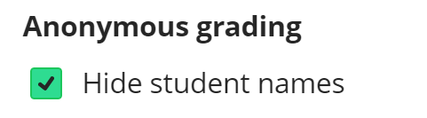 Likewise available only when there are no questions, you can enable HIDE STUDENT NAMES to do anonymous grading of Assignment Submissions.