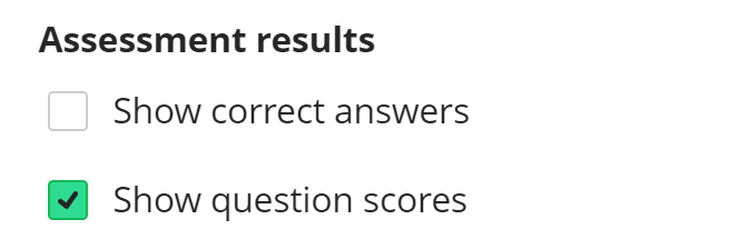 The feedback options in Blackboard Ultra have been simplified, leaving only three options. To provide only their total score, deselect both checkboxes. To show the total score and which questions were right or wrong, select only the second checkbox (default behavior.) To provide full feedback, including the total score, question scores and the correct answers, select the first checkbox.