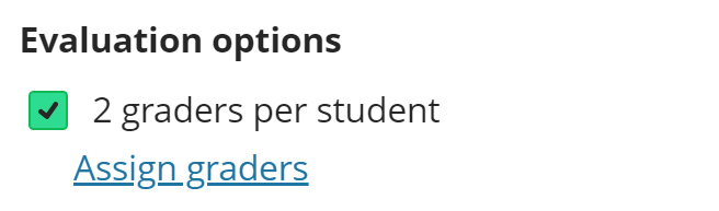 If you have multiple instructors or teaching assistants, you can enable 2 GRADERS PER STUDENT under Evaluation Options for assignments without questions. You can then click ASSIGN GRADERS to choose who will do the grading and who will “reconcile” the grades by averaging or selecting one of the grading results.