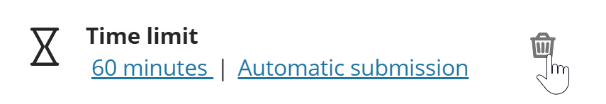 To remove an existing timer, click the trash can icon that appears when you hover over the Time Limit section.