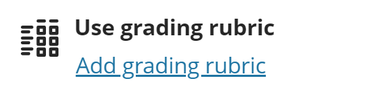 For Assessments without questions, you can assign a rubric by clicking ADD GRADING RUBRIC. If you have no rubrics, there’s a button to create a new one.