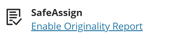 To enable SafeAssign plagiarism checking, click ENABLE ORIGINALITY REPORT. This can be switched on for any assessment, although it will only affect assessments with text and file responses. The settings are the same as in Blackboard Classic, you can choose to enable SafeAssign, allow students to view the reports, and exclude submissions from the database (used to keep draft submissions out of the database so the final paper doesn’t report plagiarism from the draft.)