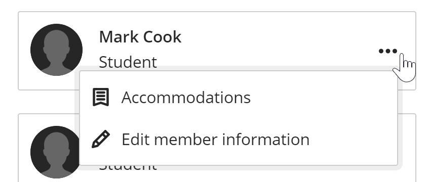 From the Roster page, click the three dots next to a student’s name and select ACCOMMODATIONS.