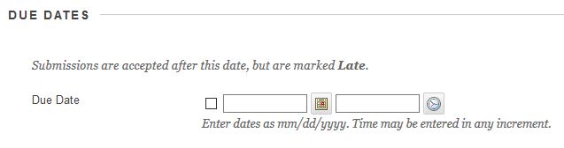 Next you have the option to add a due date. This due date will also be added to the students' Blackboard calendar (which students may import into the calendar system of their choice, such as the calendar on their phone).