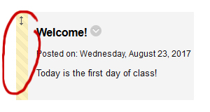 By default, announcements appear in the order in which they were posted, with the most recent ones at the top. You can change the order of posted announcements by clicking the handle on the left side of an announcement and dragging it up or down.